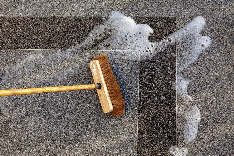 La moquette de pierre est facile à entretenir. Un nettoyage régulier avec de l’eau et une brosse suffit généralement à maintenir son apparence. De plus, la résine empêche la prolifération de moisissures ou de mousses.