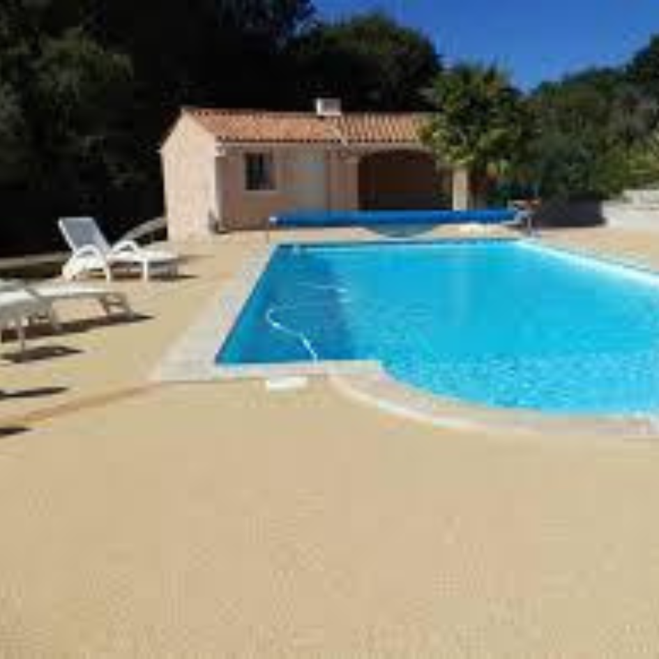 Une plage de piscine en moquette de pierre offre une surface esthétique, drainante et antidérapante, idéale pour sécuriser et embellir les abords d’un bassin. Ce revêtement est composé d’un mélange de granulats de pierre naturelle (marbre, quartz, etc.)
